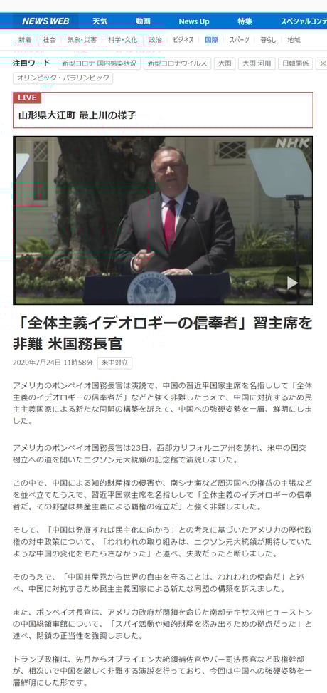 【リチャード・ニクソン大統領図書館および博物館でのポンペイオ国務長官の演説(2020年7月23日)】
