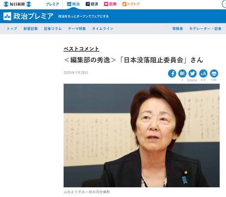 毎日新聞は、「読書からの投書」とか「コメント」という形で中立を装いつつ、自社の意見を盛り込んでくるが、悪質な印象操作と言わざるを得ない。