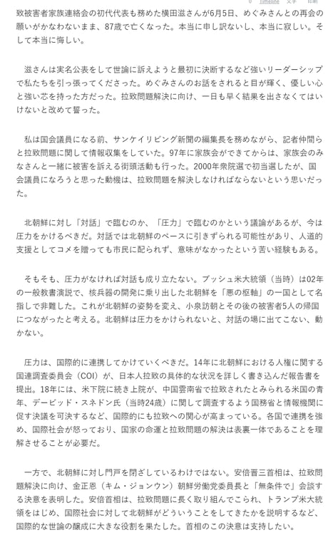 拉致問題に協力して、様々な角度で協力して動いてきた方がおっしゃるならまだわかりますが、