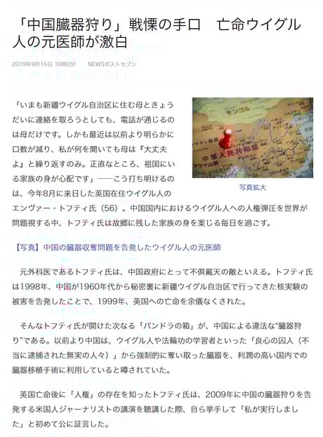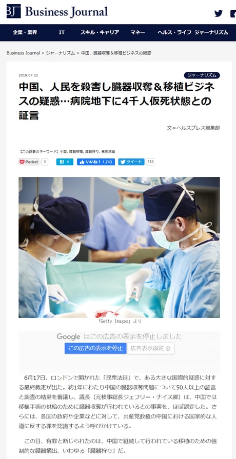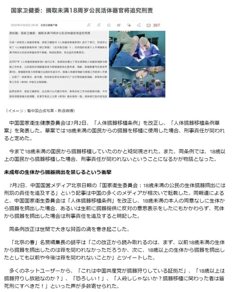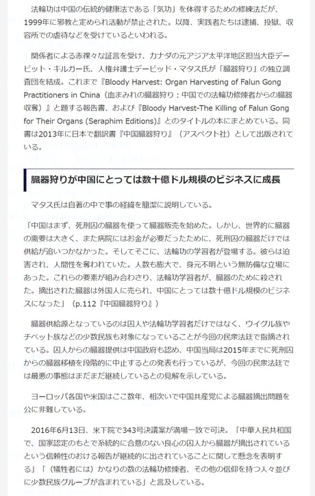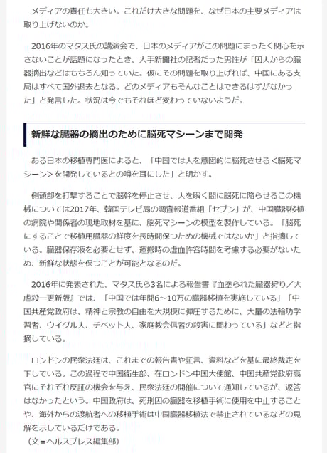 日本の既存メディアが報じない臓器狩りを告発する記事