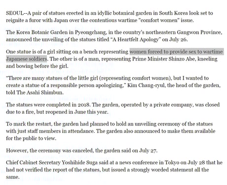海外への「性奴隷(日本軍による従軍慰安婦強制連行)」というイメージ発信のために使われた英語版記事の数々