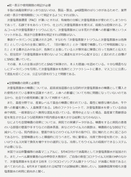 (※ JINF「次亜塩素酸水めぐる拙速報道に苦言」より引用)
