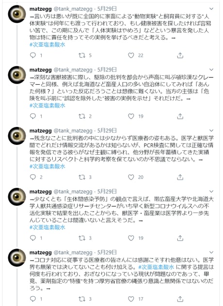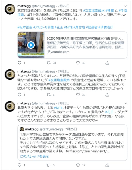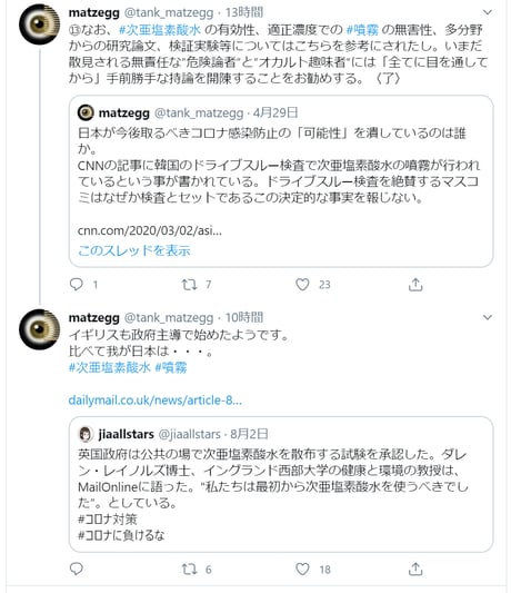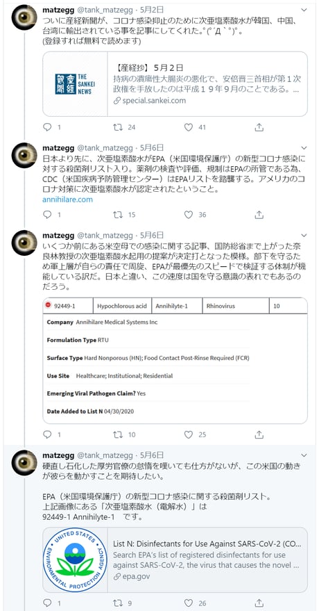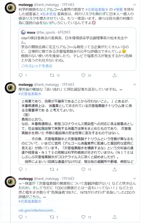 海外で次亜塩素酸水噴霧による消毒が行なわれている事実を、「報道しない自由」で「隠蔽」するマスコミ等に対する批判tweet