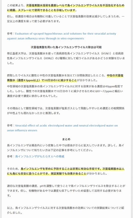 次亜塩素酸水の噴霧による消毒についての海外情報と無視された日本国内の研究発表