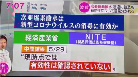 NHKの報道は、インターネットの「次亜塩素酸水は有効」との情報を否定し、「次亜塩素酸水の安全性」に対する不安を煽るように構成されており、悪質な印象操作である。