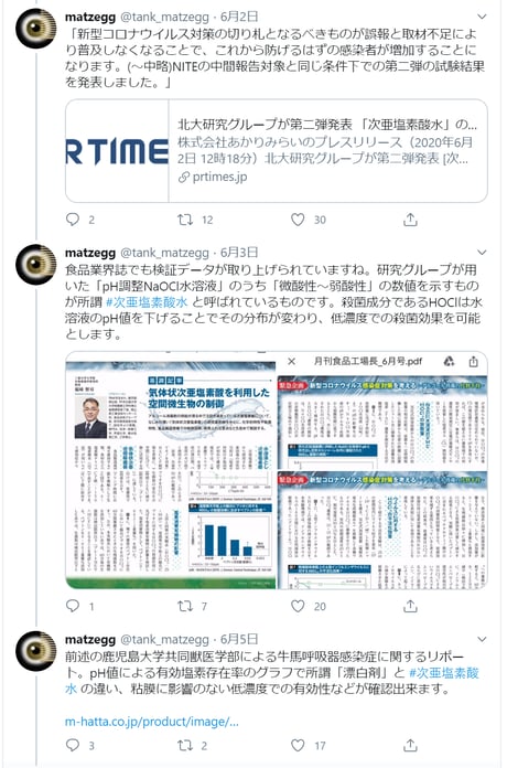 次亜塩素酸水の空中噴霧による消毒についてのtwitter投稿