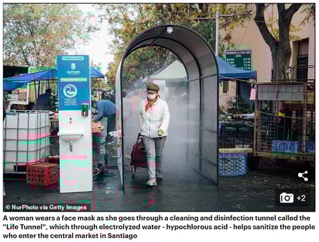 「英国政府は公共の場で次亜塩素酸水を散布する試験を承認した。ダレン・レイノルズ博士、イングランド西部大学の健康と環境の教授は、MailOnlineに語った。"私たちは最初から次亜塩素酸水を使うべきでした”。としている。」