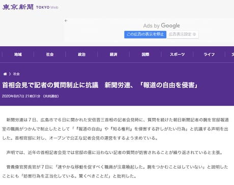 --------------------- 東京新聞(共同通信) 2020.8.7