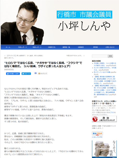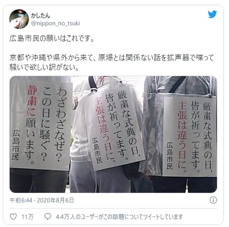 日本の全国紙やテレビ報道が一切取上げないのが、「追悼」や「慰霊」と関係ない政治スローガンで騒ぐ人々と、それによって被害を受ける現地の方々の声。