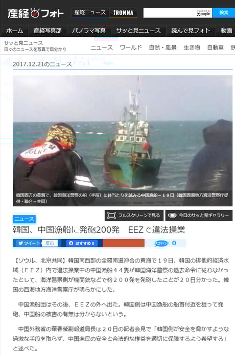 数百隻の中国漁船に海洋資源を根こそぎ密漁されたり、海底ガスを盗掘されても、「遺憾」の表明しか出来ないのは、とても「主権のある独立国」とは言えない。日本より遙かに経済も国防力も劣ったインドネシアでさえ、違法操業した中国漁船を拿捕して爆破した。中国共産党に弱い韓国でさえ、違法操業する中国漁船に発砲している。