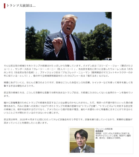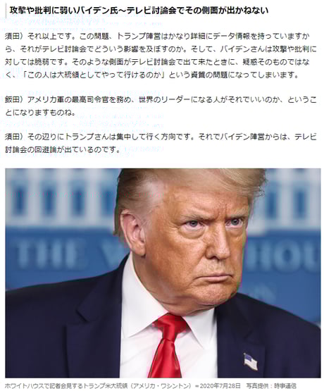 日本の既存マスコミが「反トランプ」「バイデン推し」報道を行なう理由として考えられる