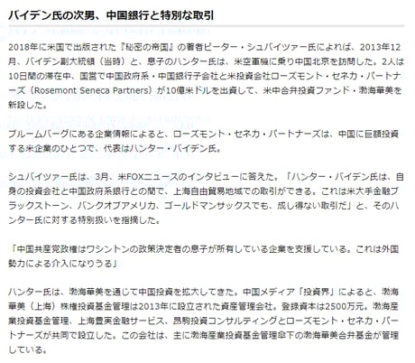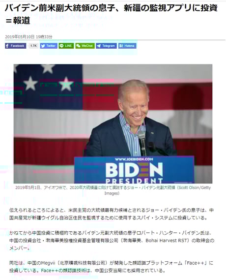 中国共産党とバイデン候補の繋がり