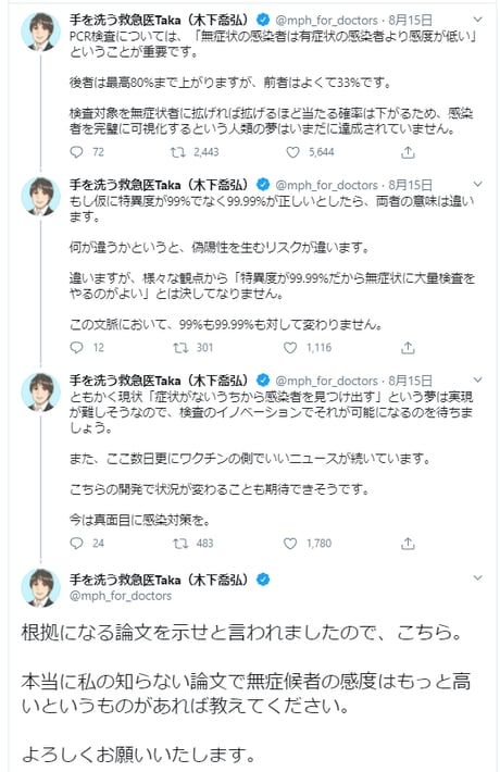 — 手を洗う救急医Taka(木下喬弘) (@mph_for_doctors) August 15, 2020