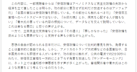 「これだけの長期政権なんで、功罪両方あるというふうに申し上げたいんですけども、個人的には罪があまりに大きかったなと」