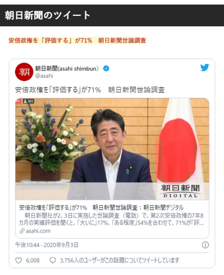 プレジデントが「最低・最悪」と評する安倍政権の評価が朝日新聞の世論調査で71%!?