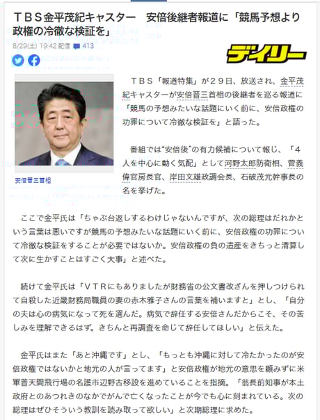 さらに「功罪」と云いながら「民主党政権の負の遺産」まで安倍政権の責任であるかのごとく取上げ、法的責任もない「森友・加計・桜」をさも大疑獄事件のように並べ上げる。