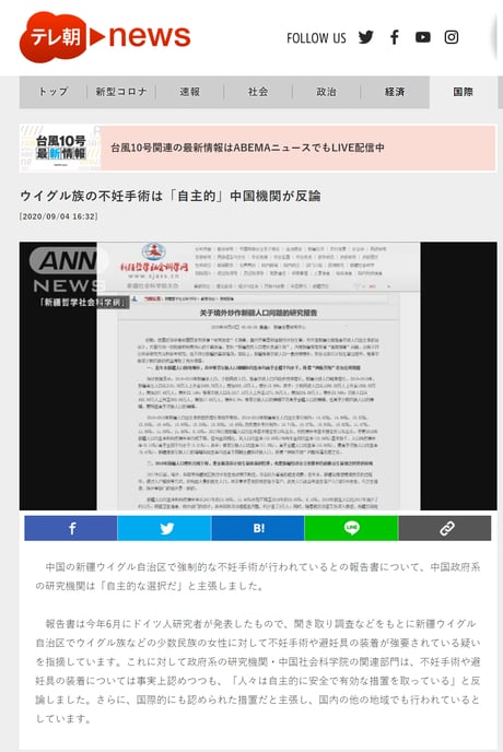 小松アナが「ウィグル報道は中国共産党にチェックされている」と番組で暴露していたが、中国共産党の主張を垂れ流しにするのは、中国共産党の国家犯罪に加担するのと同じだ。