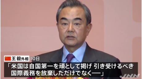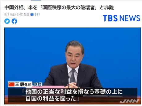 中国の王毅外相は、アメリカを「現在の国際秩序の最大の破壊者だ」と名指しで非難しました。