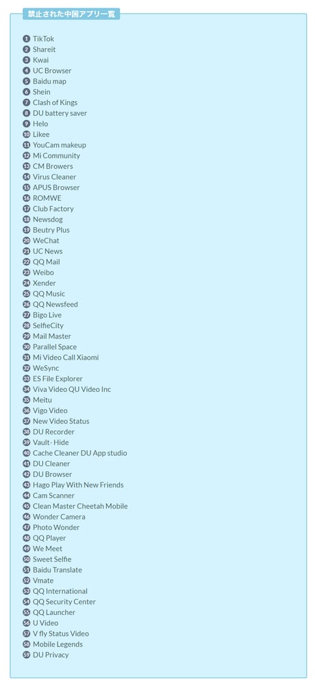 国境付近で発生した軍の衝突を巡り中国と激しく対立するインド政府は既に、#TikTok を始め中国企業などが提供する59のモバイルアプリを禁止した。 pic.twitter.com/uoMpsprhDv