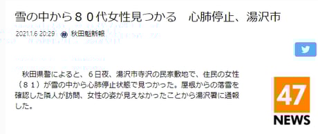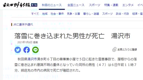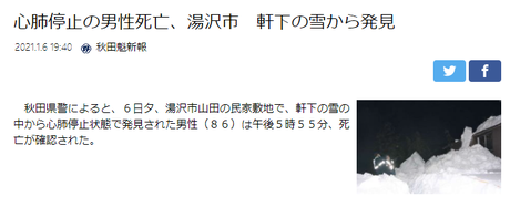 ようやく湯沢市、羽後町への派遣要請がなされるようですが、今日は残念なニュースが3件続きました。雪の被害によって市民が亡くなる事故が3件立て続けにおきています。