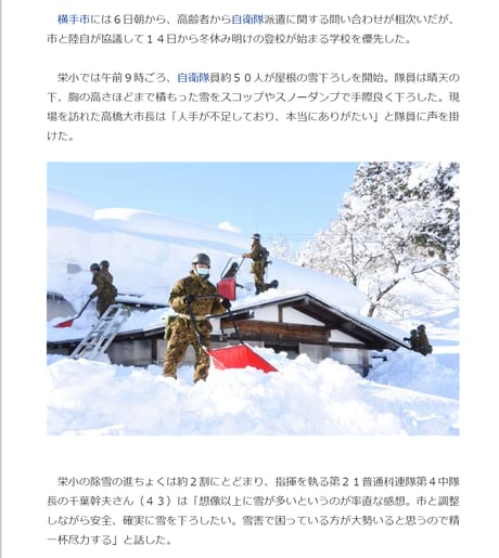 横手市には6日朝から、高齢者から自衛隊派遣に関する問い合わせが相次いだが、市と陸自が協議して14日から冬休み明けの登校が始まる学校を優先した。