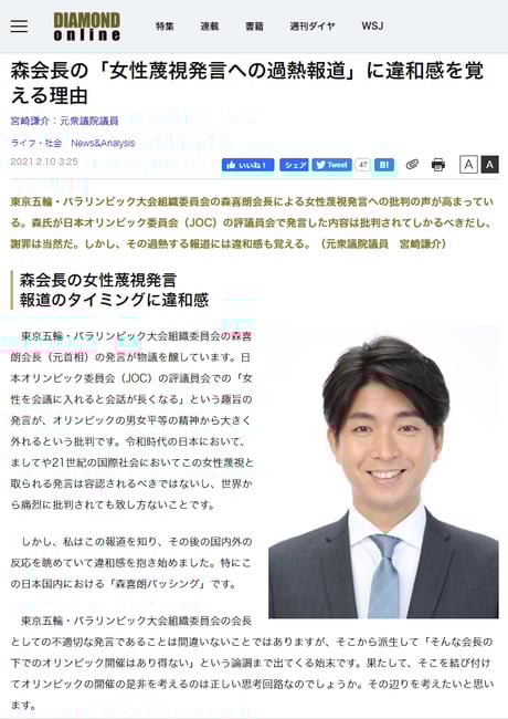 森会長の「女性蔑視発言への過熱報道」に違和感を覚える理由