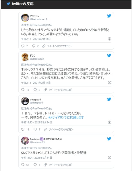 ネットを通じて事実関係が多くの人に知られるようになり、「マスコミの集団リンチ」だと批判されるようになると、今度は『森元首相「ネットリンチ」』だと責任をネットに擦り付ける。