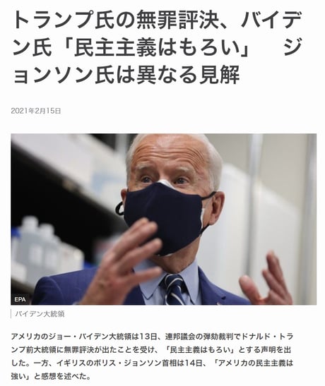 イギリスのジョンソン首相は14日、米CBSのインタビューで、トランプ氏の弾劾裁判の結果について感想を述べた。