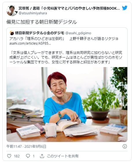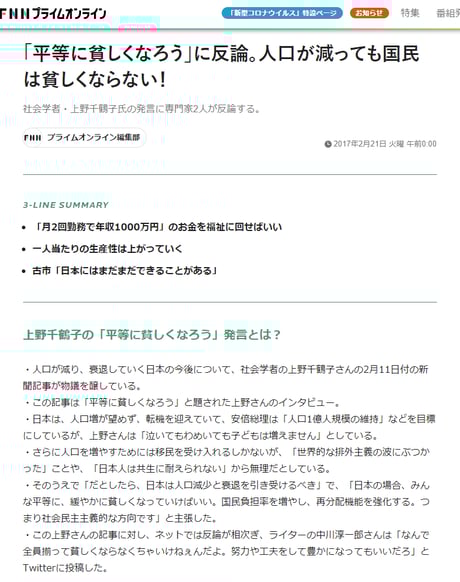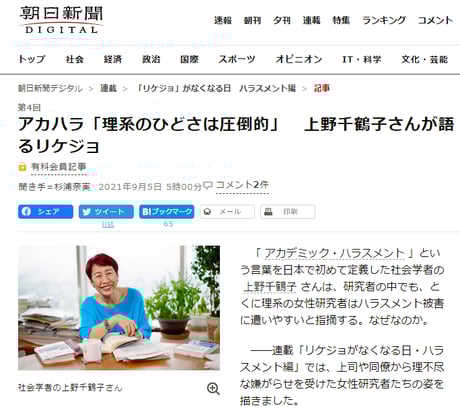 社会学者・東大名誉教授 上野千鶴子さんの過去記事についてのtwitter炎上