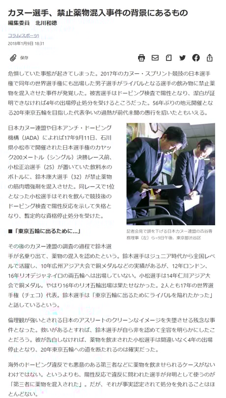 ・何が言いたいのかまったくわからない記事。飲食物の無駄な廃棄が多いのは五輪にかぎったことではないし、時給1500円は薄給とはいえないし。オリンピックの清掃員を何だと思っていたのだろうか。