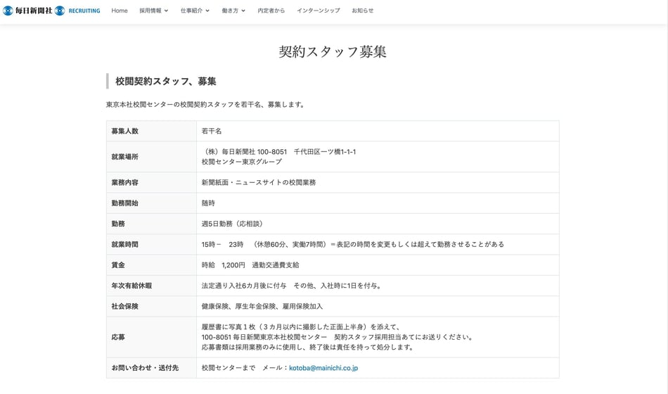 だとしたら、毎日新聞の契約スタッフは「奴隷以下」だな。毎日新聞の清掃の仕事は時給1500円以上あるのかと言えば、なんと毎日新聞のアルバイト料は「校閲は時給1200円,一般事務は時給970円」の奴隷以下の薄給だと判明!!