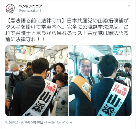 山添議員に批判的なtweet---------------------