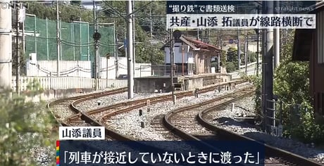 日本共産党の山添拓参院議員が鉄道営業法違反(鉄道地内立ち入り)容疑で書類送検されたとの報道。