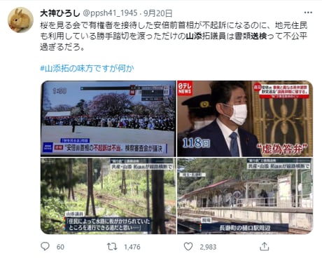 山添議員擁護のtweet ------------------
