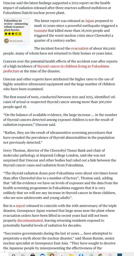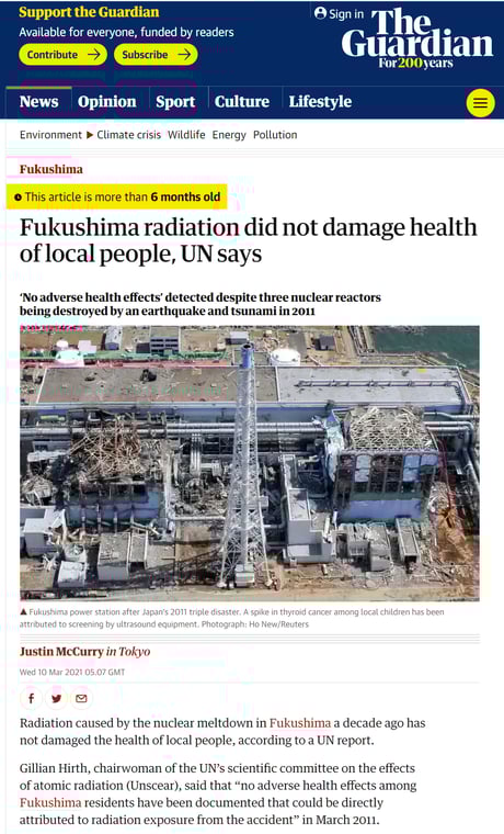 The Guardian「福島の放射能は地元民の健康に影響なし」