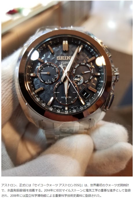 「初代が1969年に発売されたセイコーの『アストロン』シリーズは、2012年にGPS搭載モデルが登場しました。一般的な電波時計と異なり、電波が届かない場所でも、GPS情報から自動的に現在地の時刻に修正されるそうです。