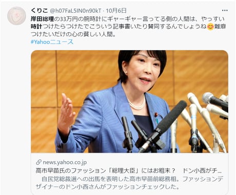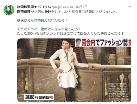 《逆に言うと岸田総理には腕時計の値段以外、罵る点がなかったとも言えるよね》