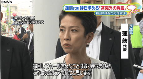 ※ 「撤回しても一度言ったことは取り戻せません」と仰っていた蓮舫さん。当然、森元首相に求めた処分より、厳しい処罰を下して頂けますよね?