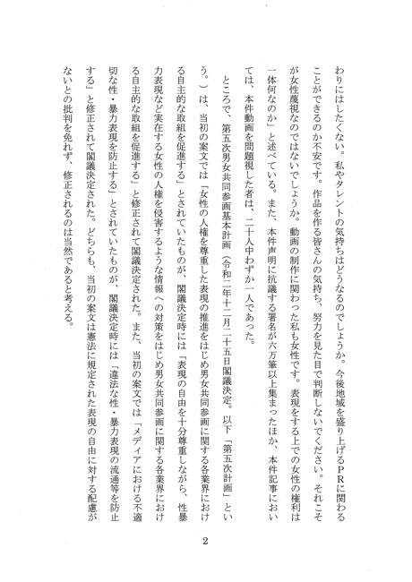 ・フェミ議連「性犯罪を誘発するから、謝罪し、動画使用を停止し、削除せよ」との抗議