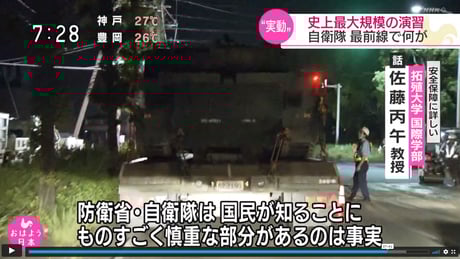 国防は当然の事ながら災害時にも自衛隊頼りな我が国。当然自衛隊も有事に備えた演習を行うのは必然。当然公道も走るさ。それを公共放送であるNHKが批判してどうする。