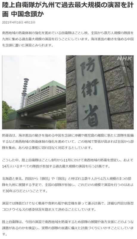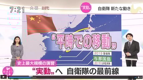 ・NHKは中国が日本を刺激する現状で自衛隊の動きを詳らかに報道したい意図しか感じません。