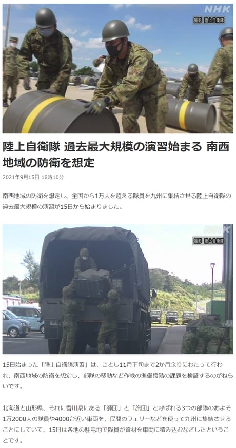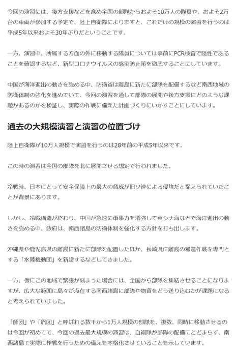 "国民を守るための訓練"に決まってるでしょ。自衛隊はマスコミに演習内容を発表して、地方自治体にも説明してますよ。国民に知らせる努力は、NHKなどのマスコミと自治体にもあるのでは?