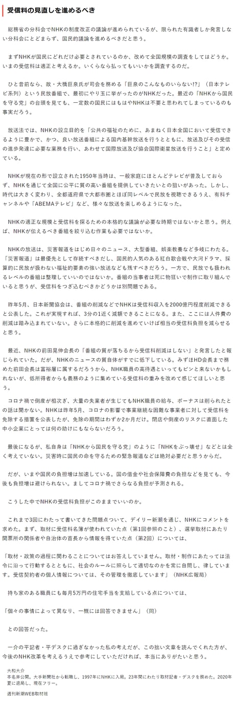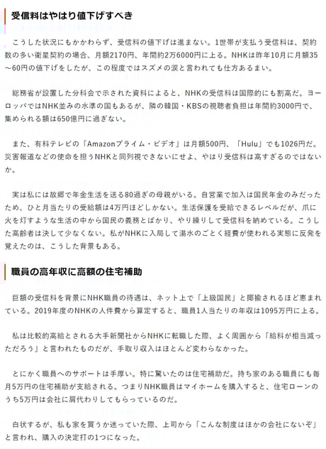 ・元記者の告白 NHKの「タクシー私的利用」と「受信料名簿のあり得ない使われ方」 デイリー新潮 2021.1.1
