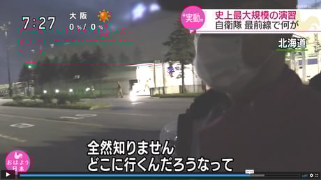 ・アナウンサーによる「目撃した地元は何も知らず驚き。周知不足。情報公開を!」との、自衛隊に対する不振を煽るコメント。世界中のどこに、演習や軍の行動について民間人にあらかじめ公開する国がある?