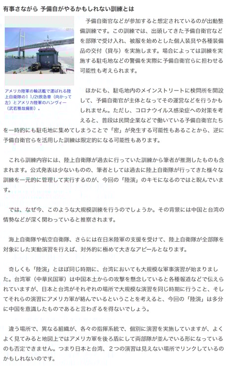 反面、《防衛に詳しい》学者さんが、「事前に国民に訓練内容をしっかり説明しろ」的な事を言ってたが、防衛の秘密説明するわけねーだろ