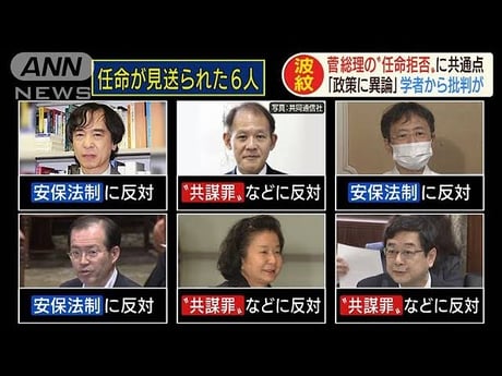 6人の任命拒否の理由を安保法や共謀罪に反対してるからだ!