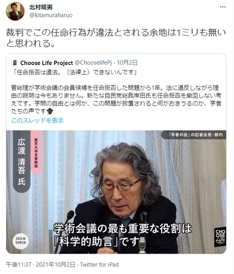 ・先日も申しましたが,菅義偉首相におかれては「過去に自衛官の入学を拒否した大学があったが,それは違憲・違法か。否か」と日本学術会議に諮問されるとよろしいと思います。