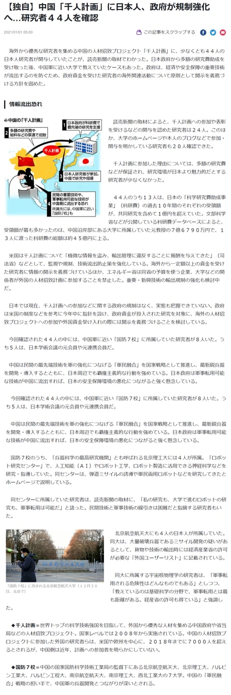 国民の技術をチャイナに与え軍事利用されている事実を報道すべし。いまや軍民両用の時代。