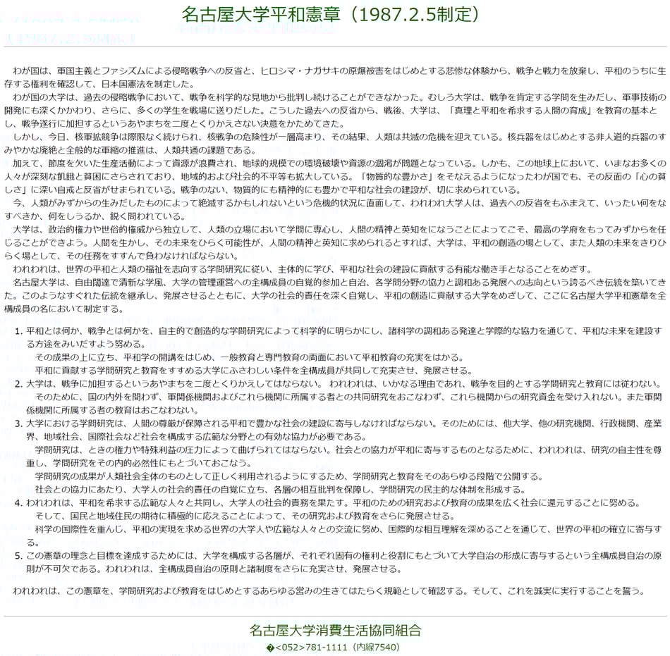 ※ 詳細は 【寄稿】名古屋大学平和憲章問題
