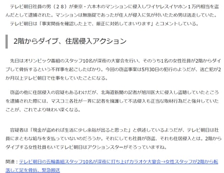 ダイブから泥棒までなんでもやります!テレビ朝日社員がマンション侵入し窃盗で逮捕、アクションスターが多数在籍するテレビ局